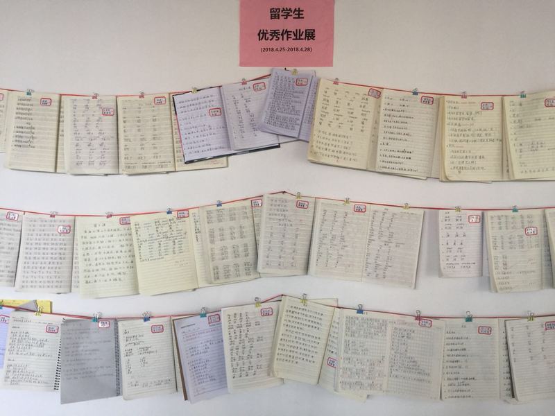 为了进一步加强留学生教学的过程管理,提升留学生作业书写质量,配合学校的教学期中检查, 2018年4月25日—28日,国际交流学院在B座4层举办留学生优秀作业展。