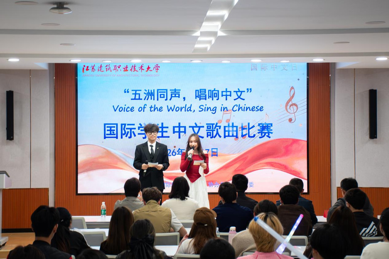 为庆祝2026年国际中文日,促进中外文化交流,展示我校国际化办学成果,2026年4月17日晚,由国际教育学院主办、校团委协办的“五洲同声,唱响中文”国际学生中文歌曲比赛在利亚楼报告厅隆重举行并圆满落幕。本次活动由校团委书记蒋德平、学工处副处长刘爱萍受邀出席,国际教育学院教师张琼、吴杨以及中外学生观众代表共同参与。