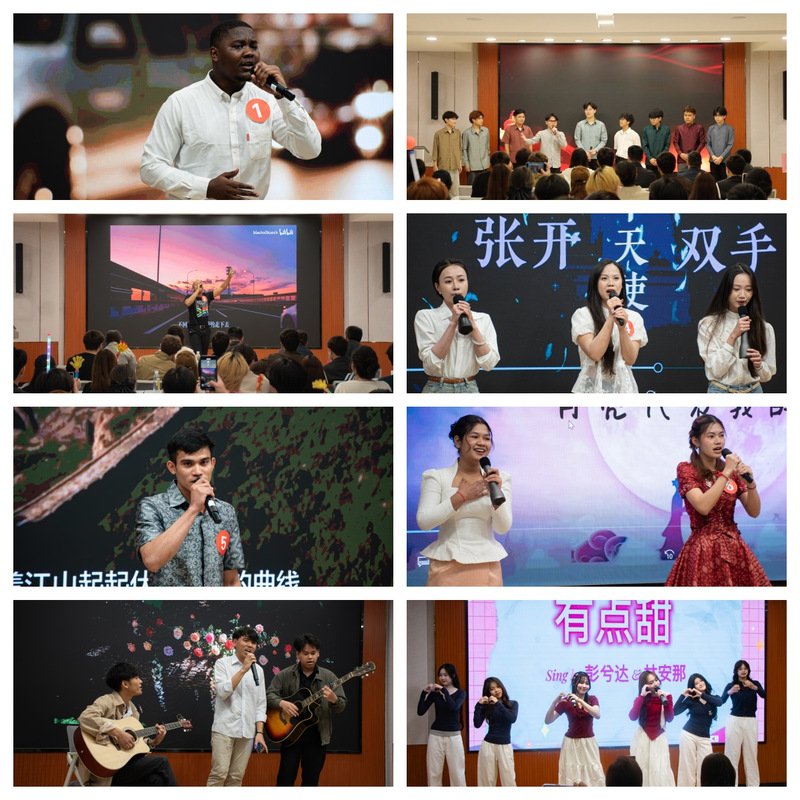 比赛现场气氛热烈,来自世界各地的留学生们用歌声架起文化交流的桥梁。八组选手依次登场,倾情演绎了多首经典与流行的中文歌曲。选手们的演唱字正腔圆、情感真挚,充分展现了他们出色的中文水平和音乐才华,赢得了现场观众的阵阵掌声。